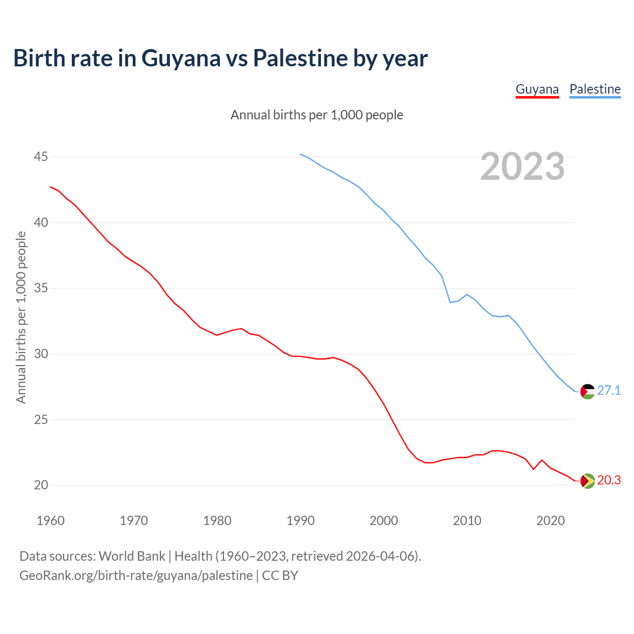 GeoRank.org/birth-rate/guyana/palestine | CC BY