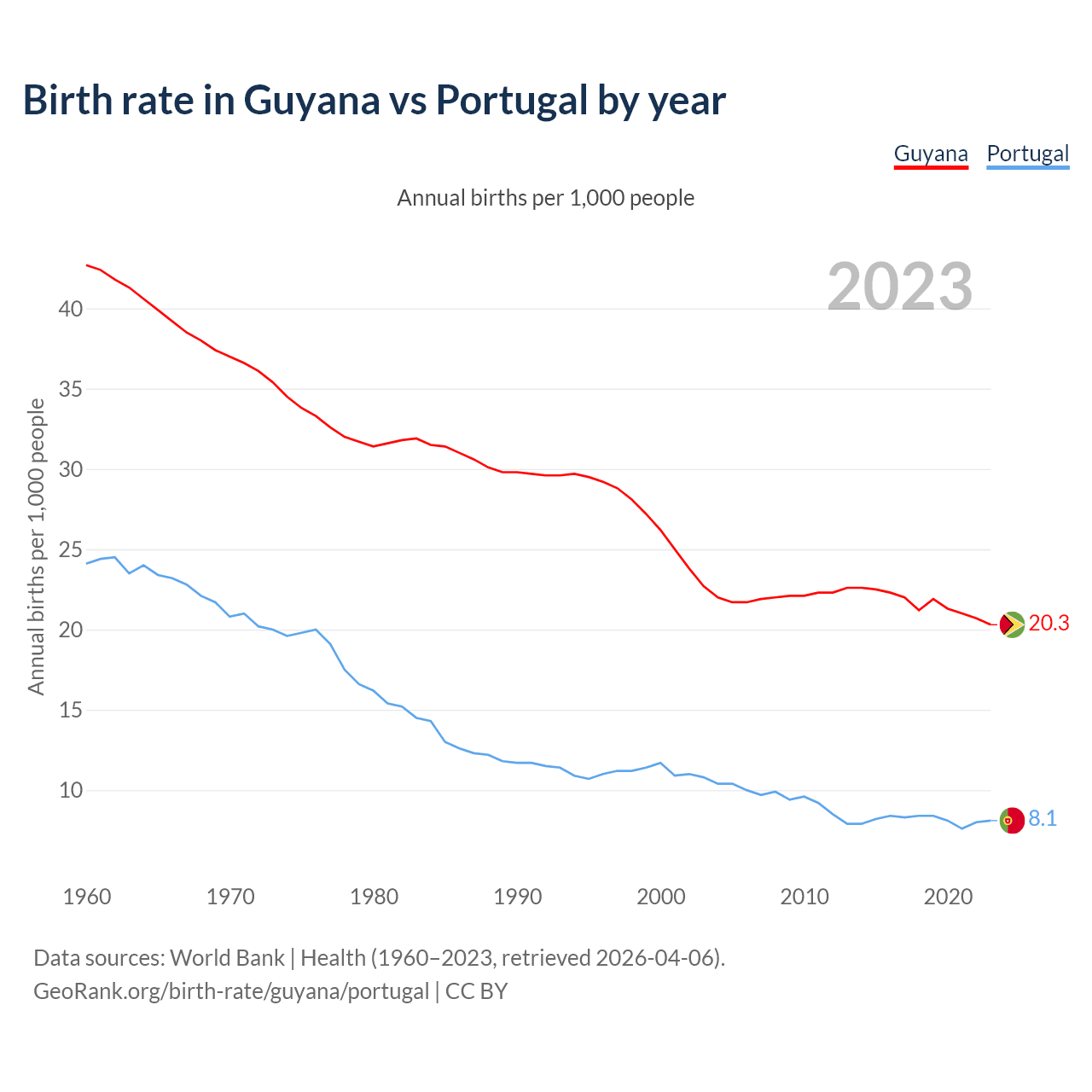 GeoRank.org/birth-rate/guyana/portugal | CC BY