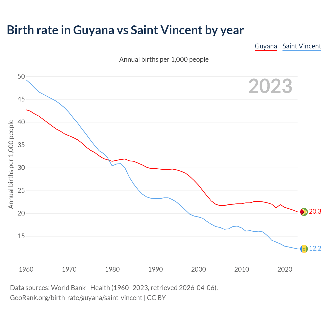 GeoRank.org/birth-rate/guyana/saint-vincent | CC BY