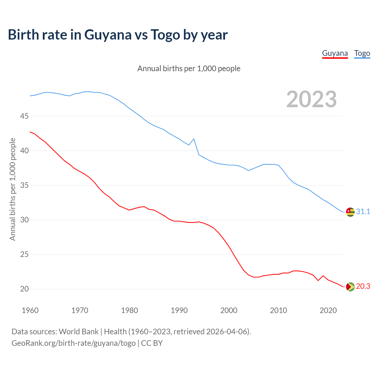 GeoRank.org/birth-rate/guyana/togo | CC BY