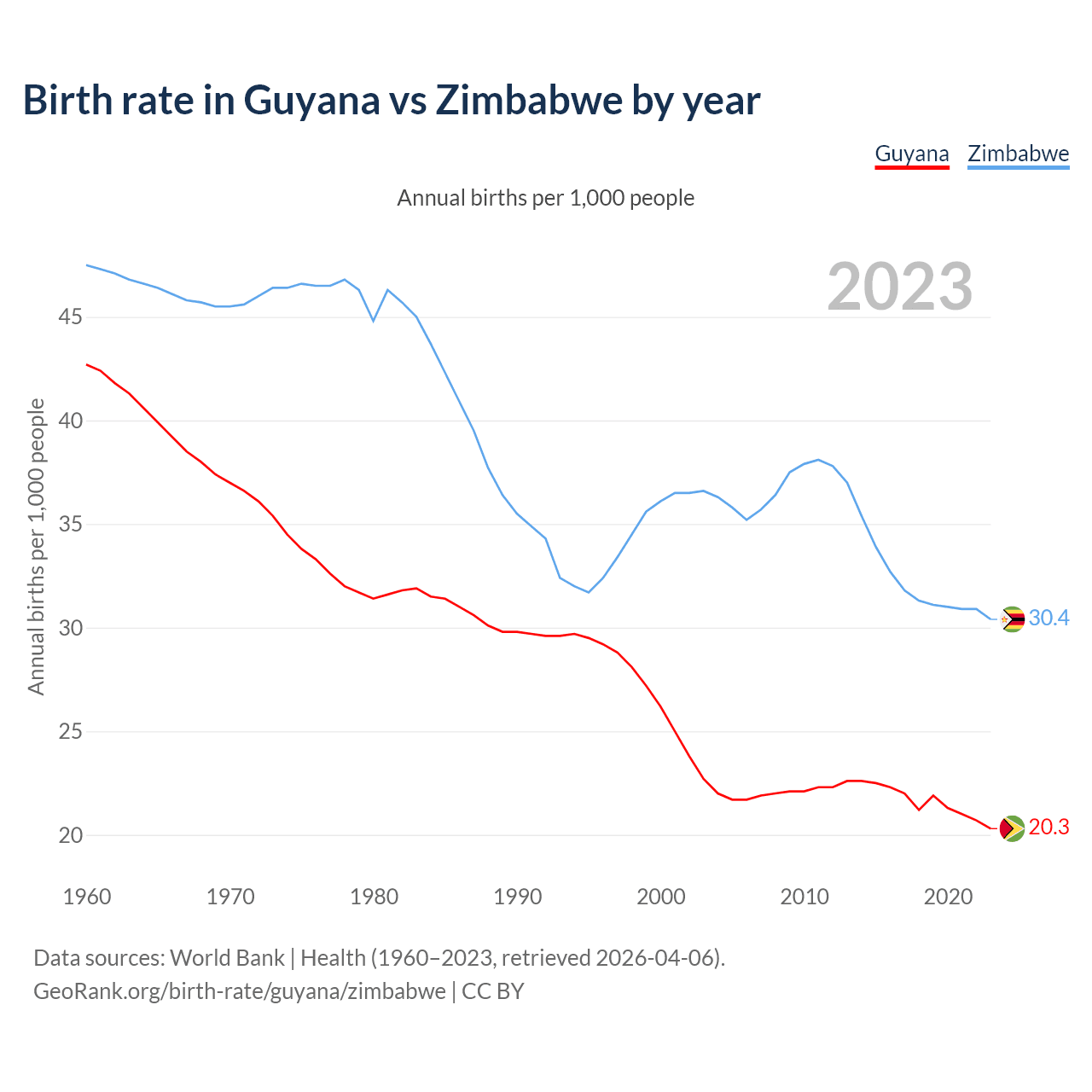 GeoRank.org/birth-rate/guyana/zimbabwe | CC BY