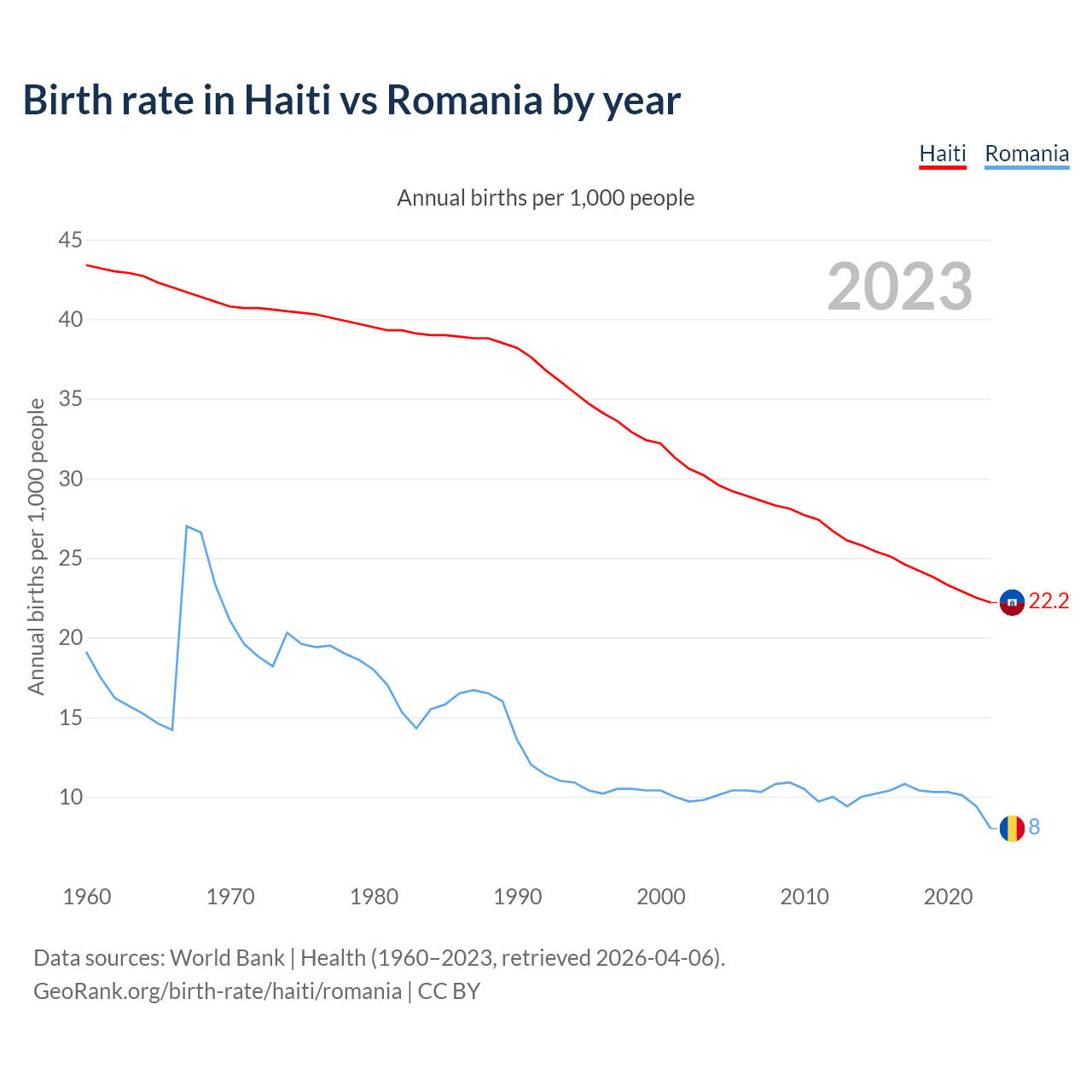 GeoRank.org/birth-rate/haiti/romania | CC BY