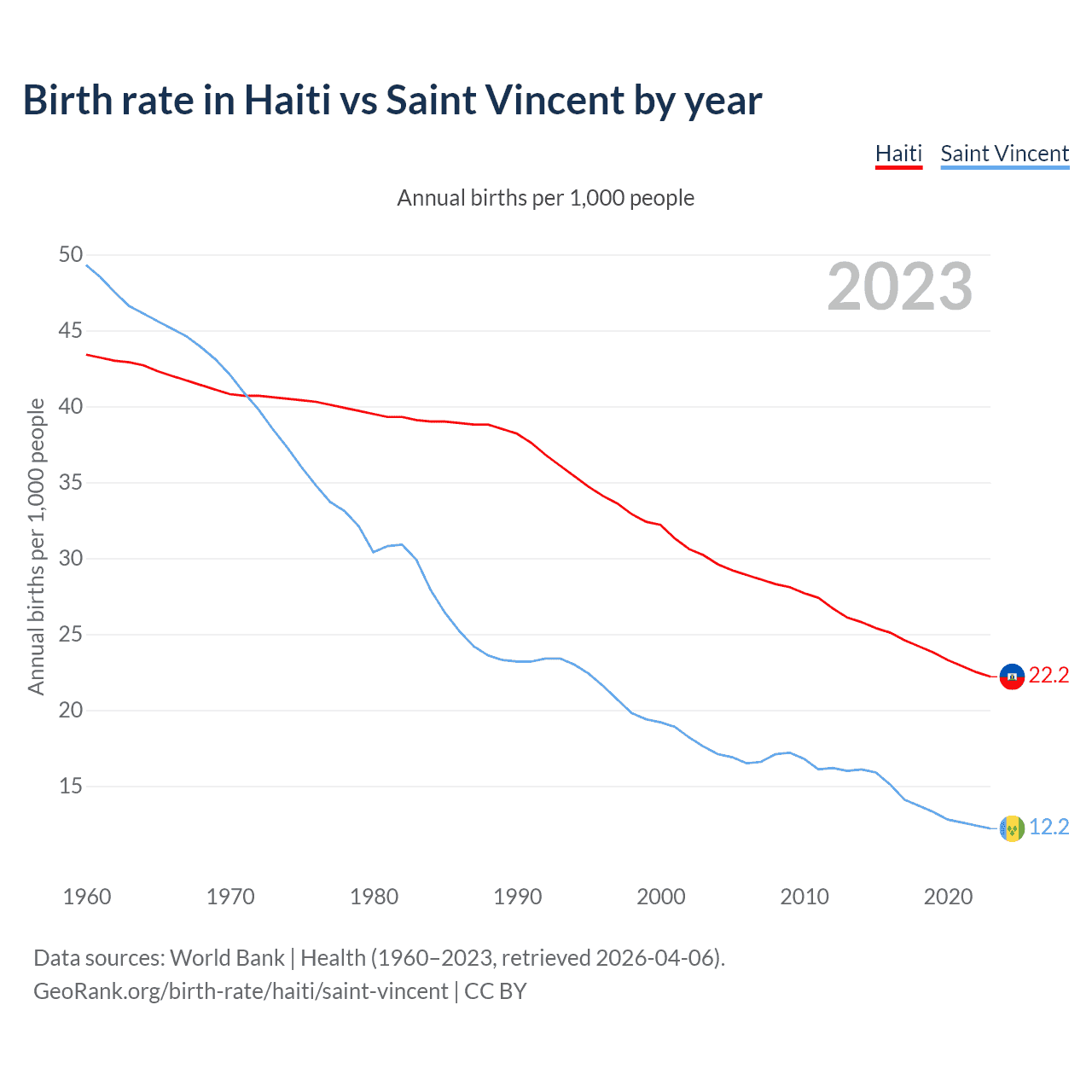 GeoRank.org/birth-rate/haiti/saint-vincent | CC BY