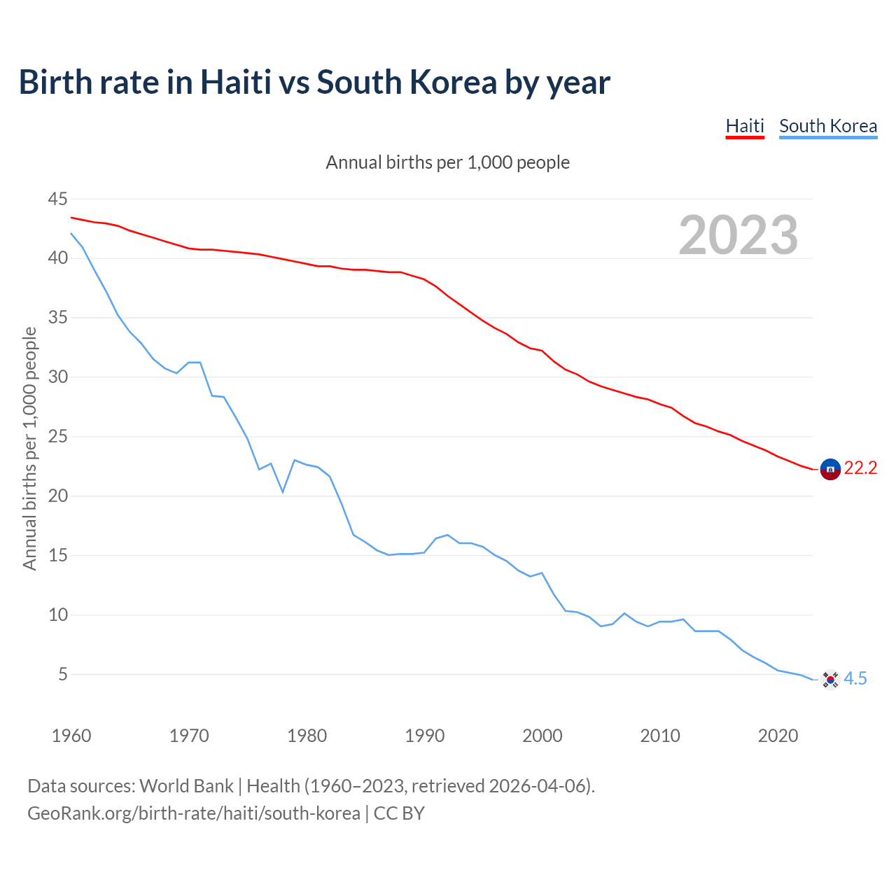 GeoRank.org/birth-rate/haiti/south-korea | CC BY