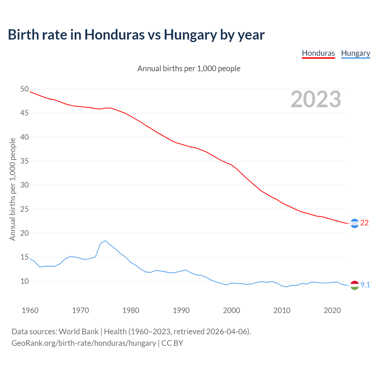 GeoRank.org/birth-rate/honduras/hungary | CC BY