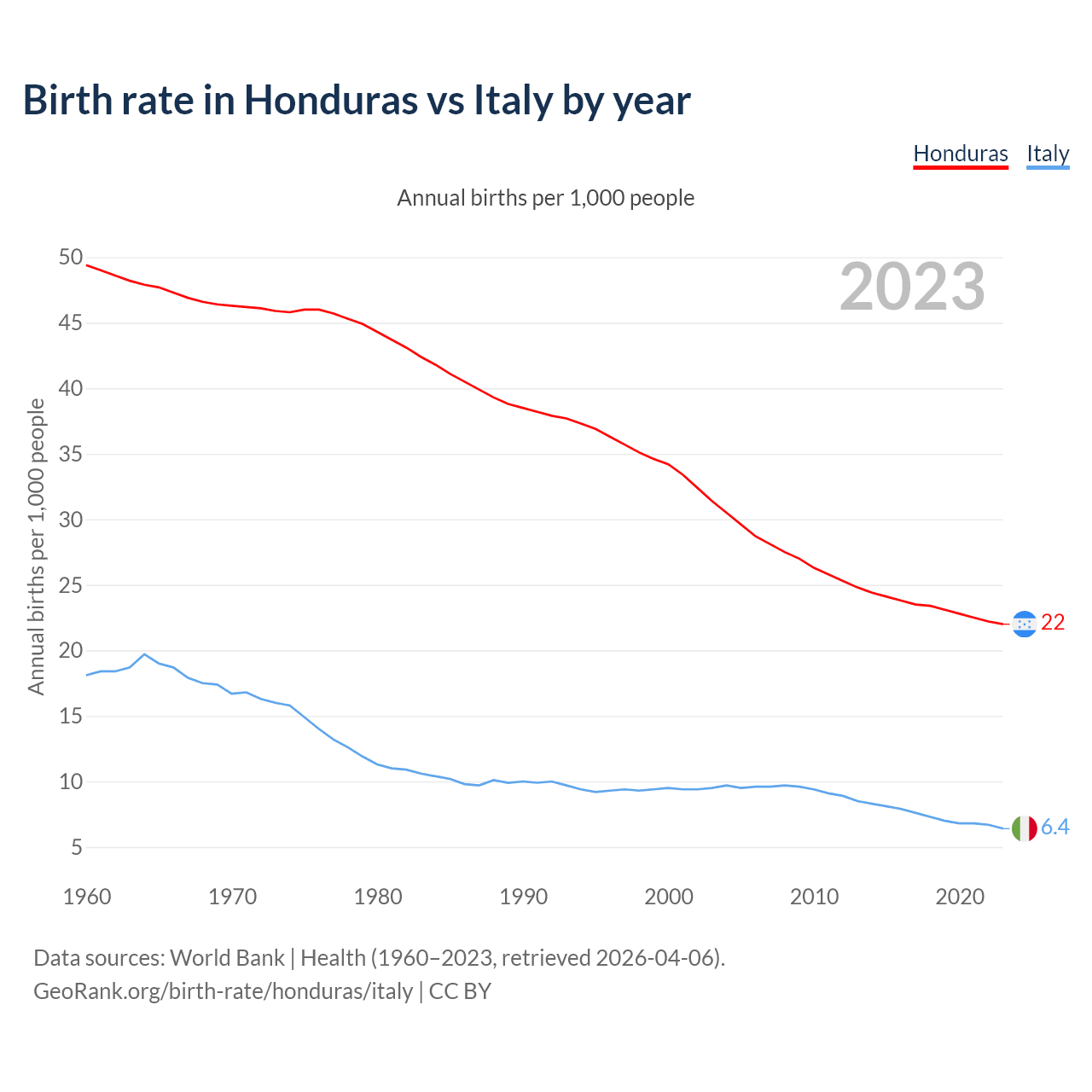GeoRank.org/birth-rate/honduras/italy | CC BY