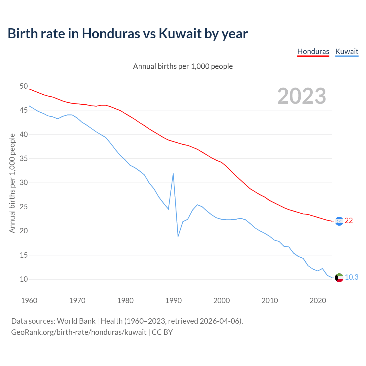 GeoRank.org/birth-rate/honduras/kuwait | CC BY