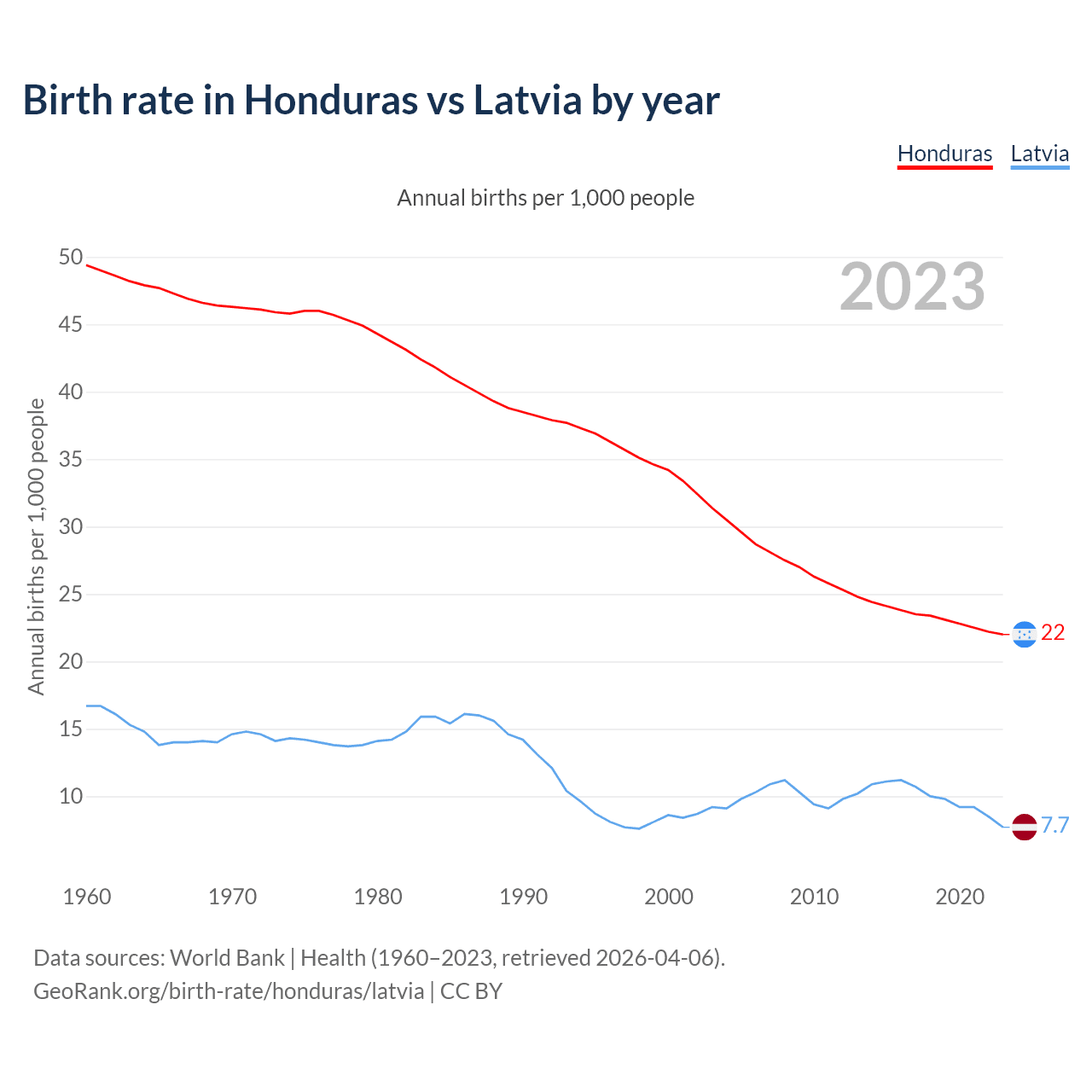 GeoRank.org/birth-rate/honduras/latvia | CC BY