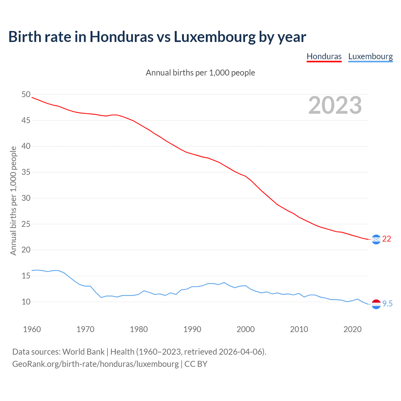GeoRank.org/birth-rate/honduras/luxembourg | CC BY