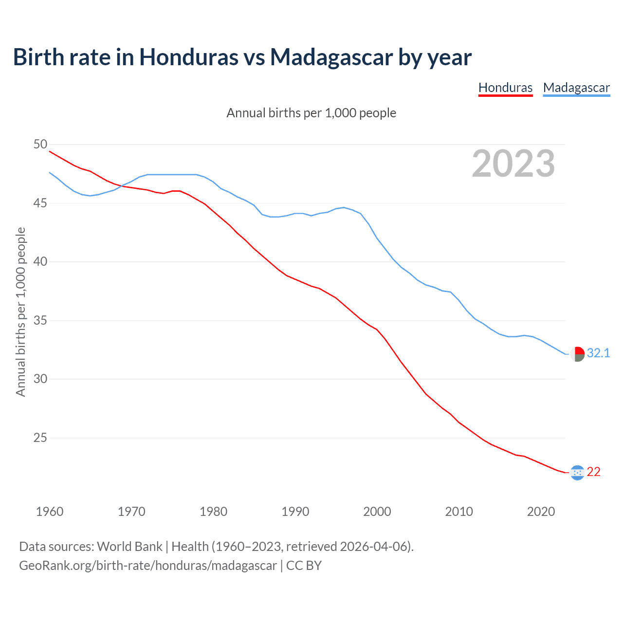 GeoRank.org/birth-rate/honduras/madagascar | CC BY