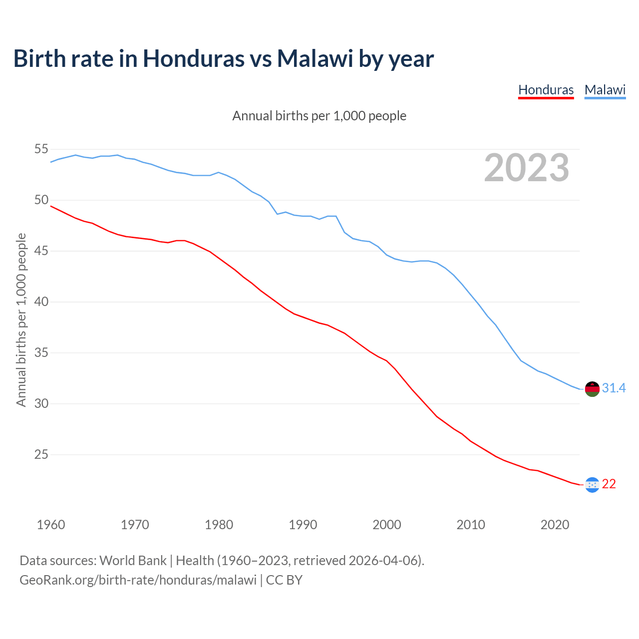 GeoRank.org/birth-rate/honduras/malawi | CC BY