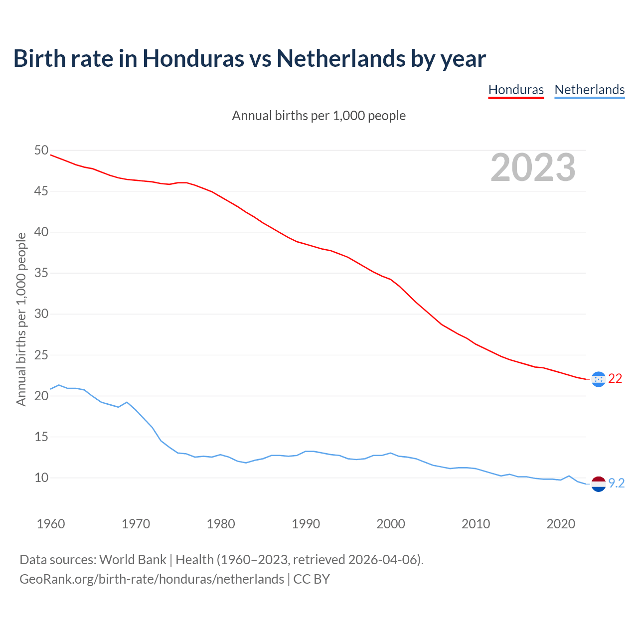 GeoRank.org/birth-rate/honduras/netherlands | CC BY