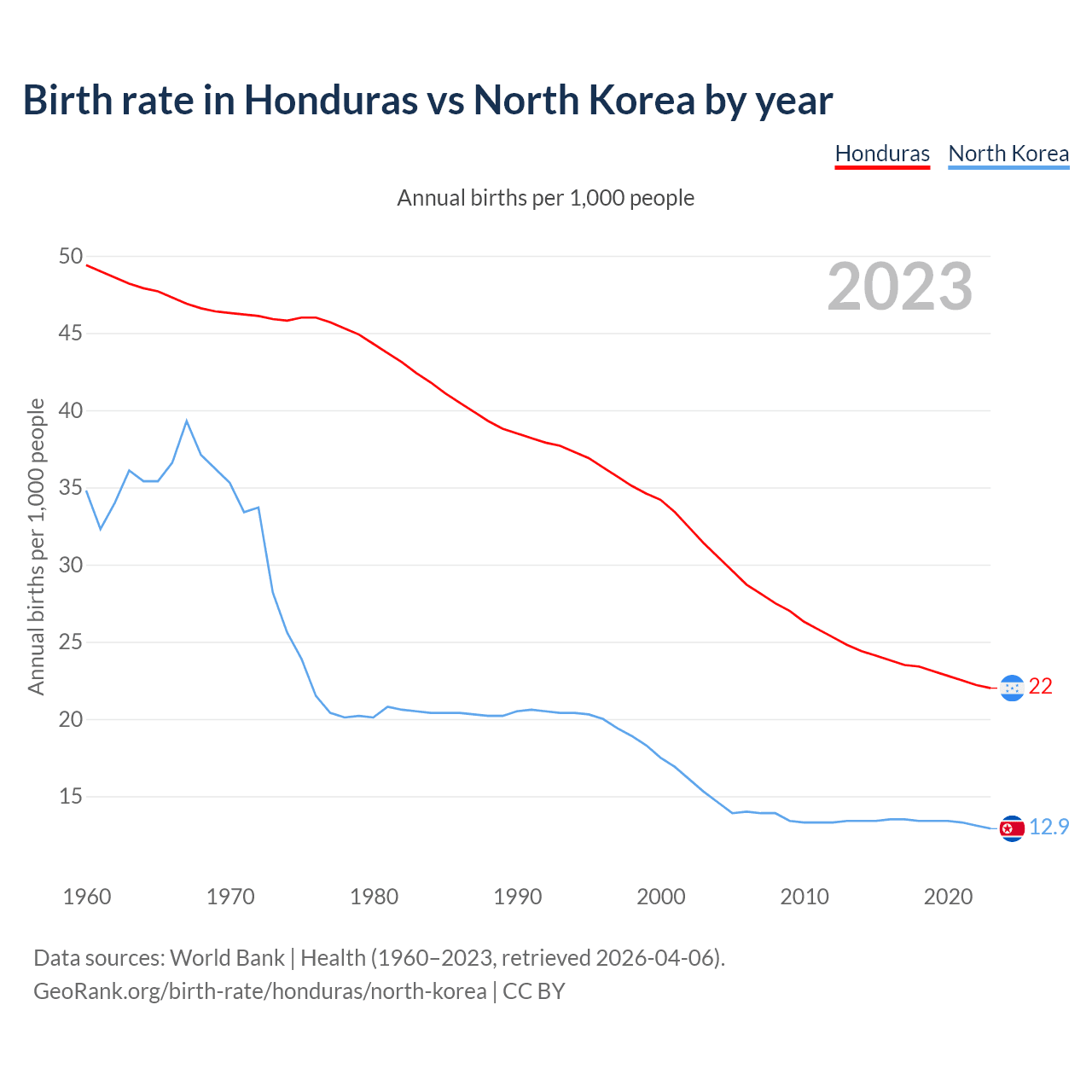 GeoRank.org/birth-rate/honduras/north-korea | CC BY