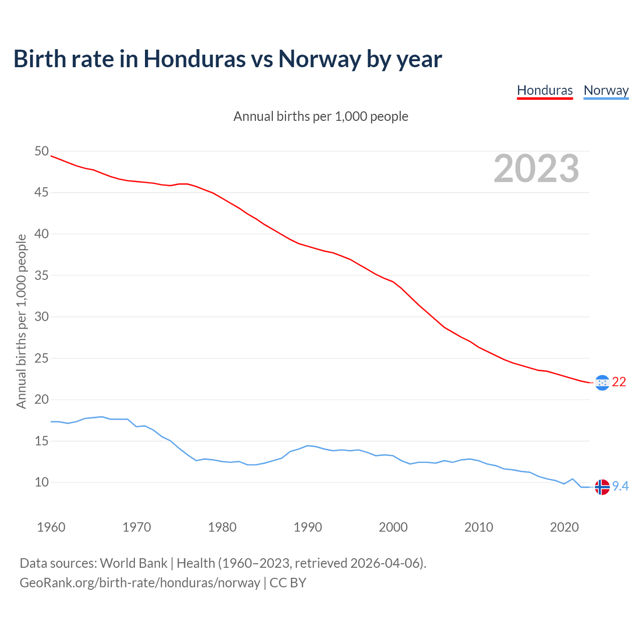 GeoRank.org/birth-rate/honduras/norway | CC BY