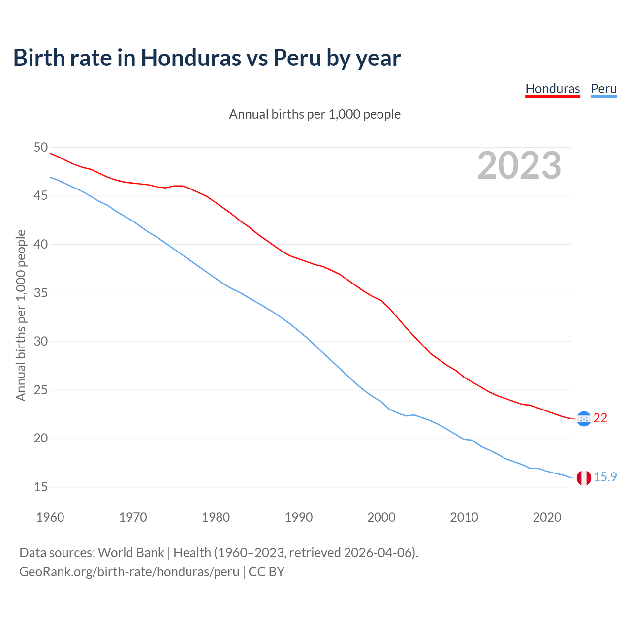 GeoRank.org/birth-rate/honduras/peru | CC BY