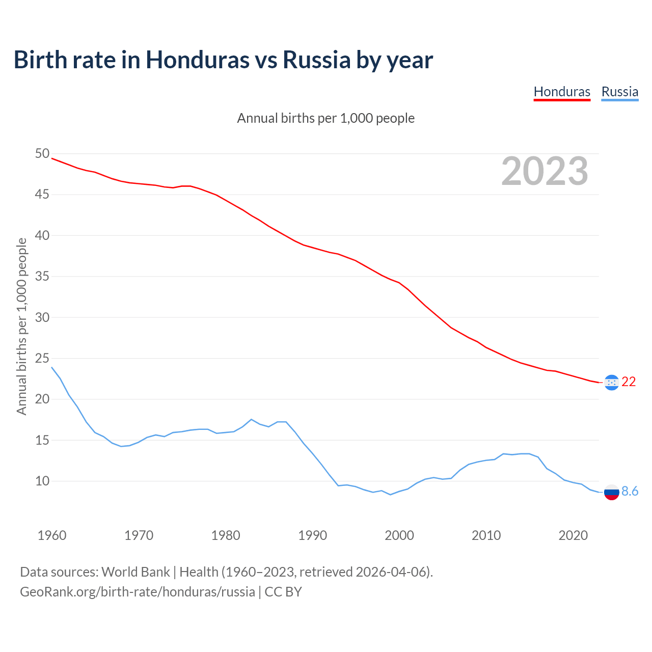 GeoRank.org/birth-rate/honduras/russia | CC BY