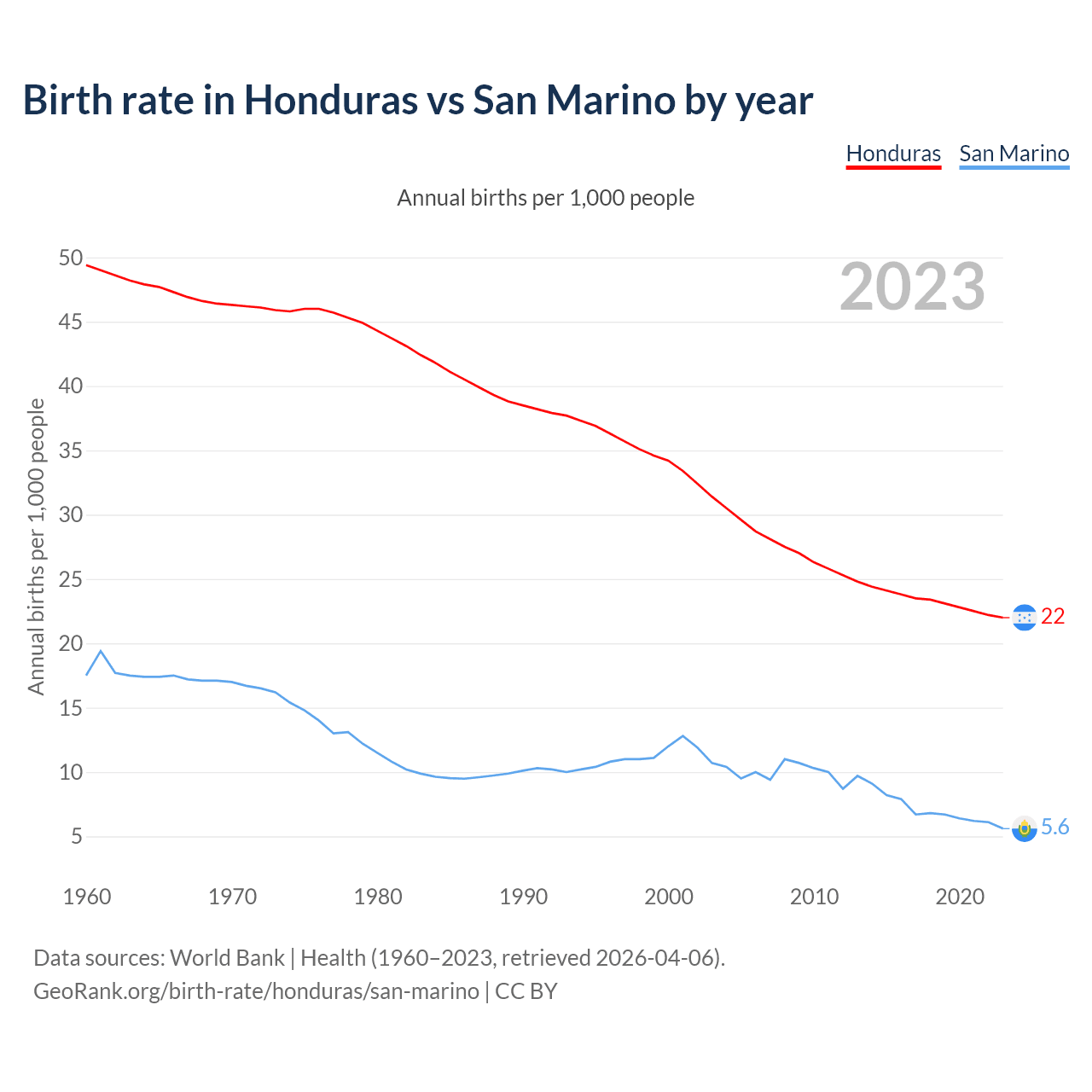GeoRank.org/birth-rate/honduras/san-marino | CC BY
