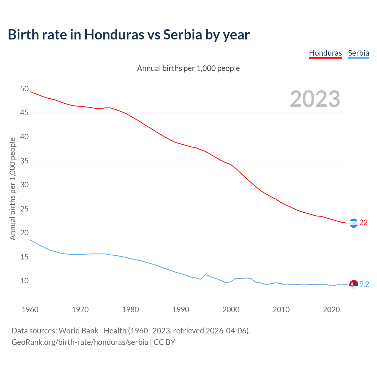 GeoRank.org/birth-rate/honduras/serbia | CC BY