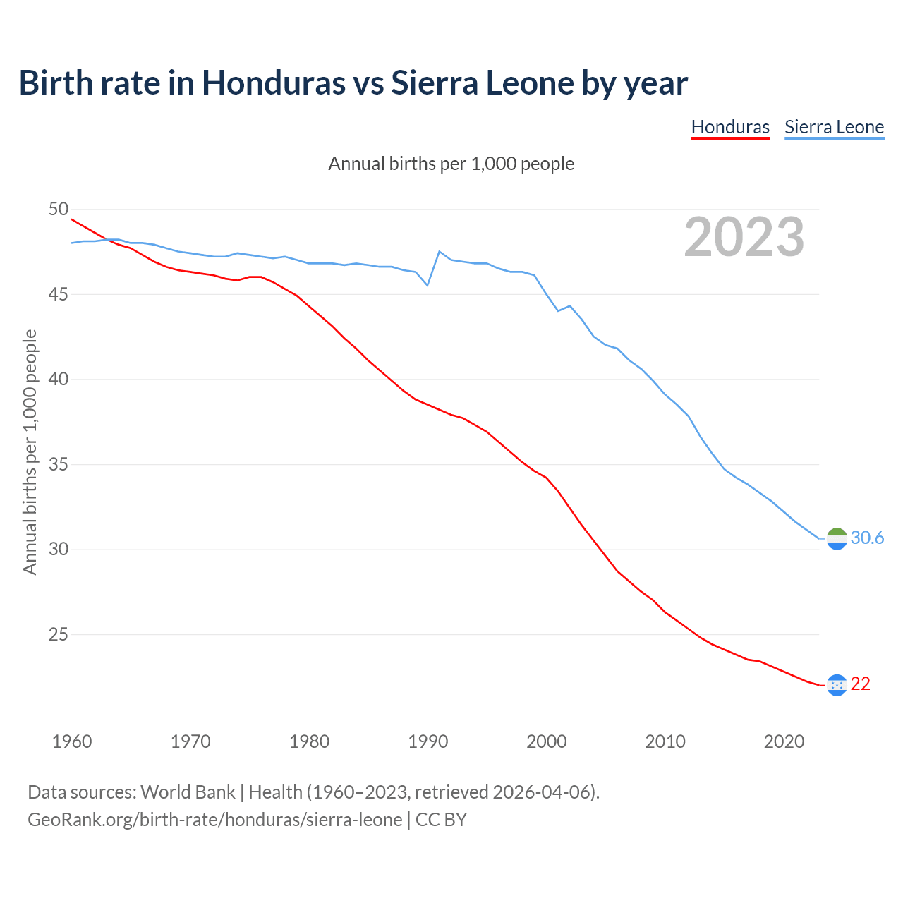 GeoRank.org/birth-rate/honduras/sierra-leone | CC BY