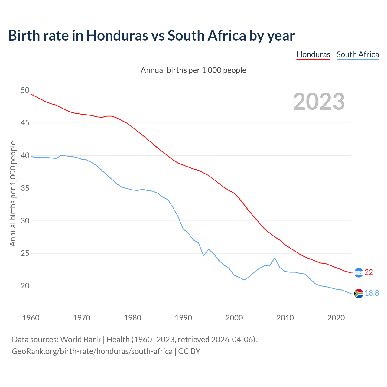 GeoRank.org/birth-rate/honduras/south-africa | CC BY
