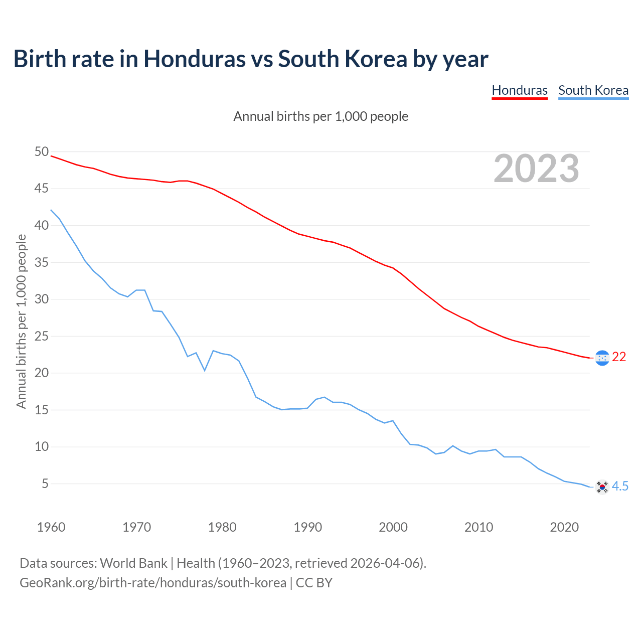 GeoRank.org/birth-rate/honduras/south-korea | CC BY