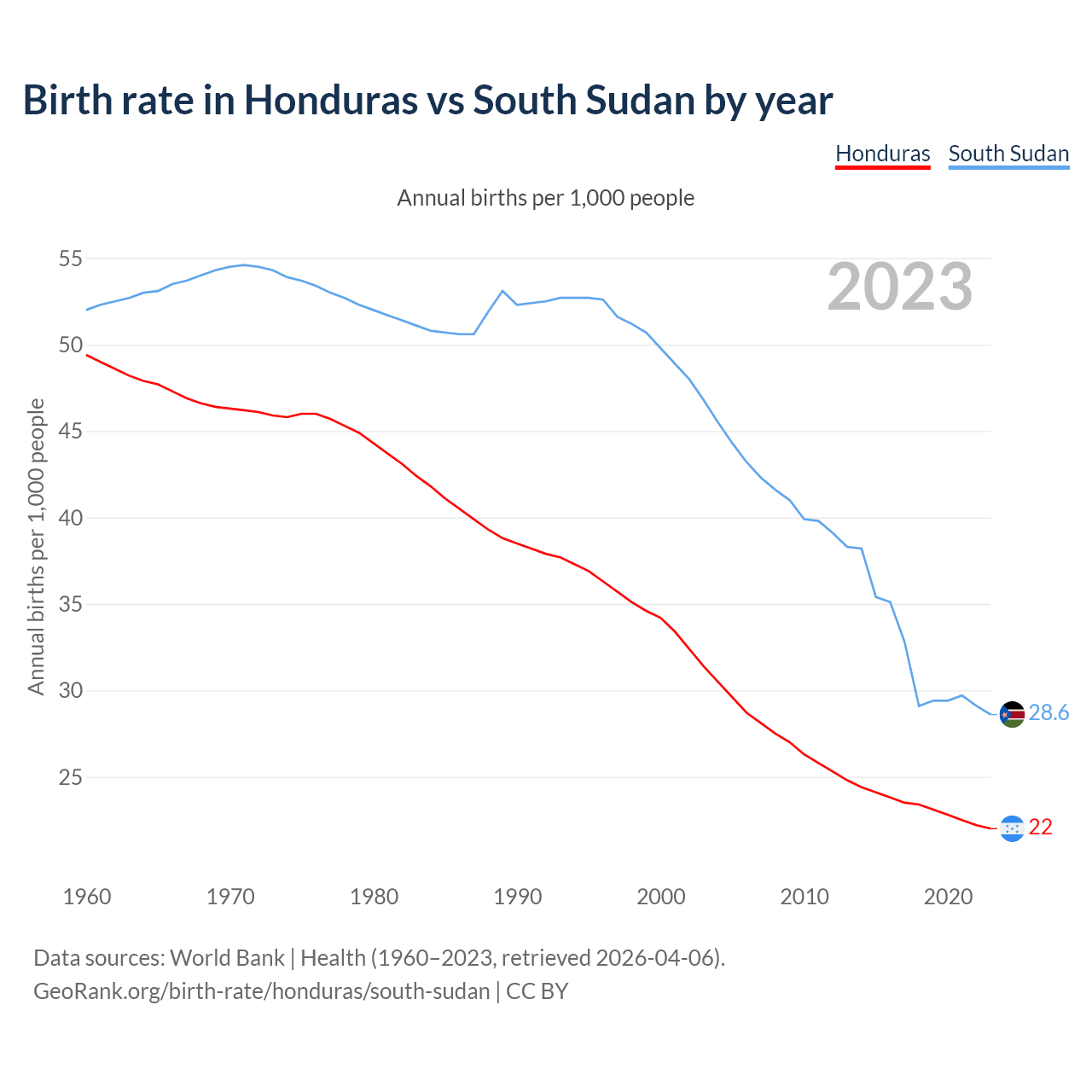 GeoRank.org/birth-rate/honduras/south-sudan | CC BY