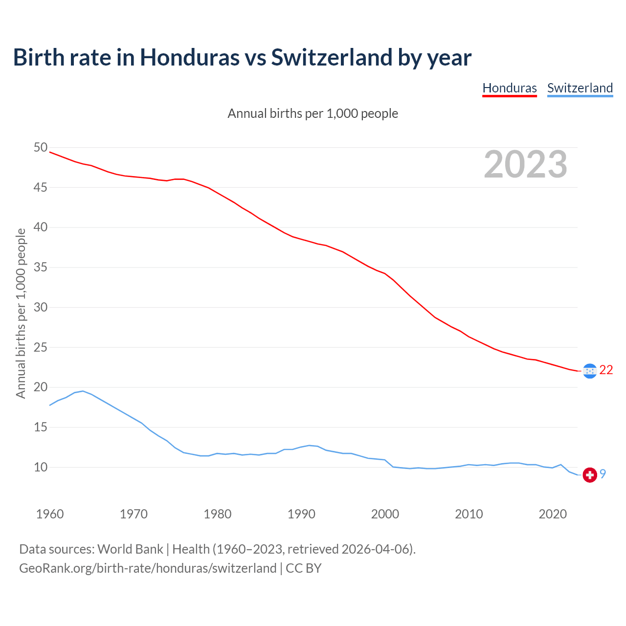 GeoRank.org/birth-rate/honduras/switzerland | CC BY
