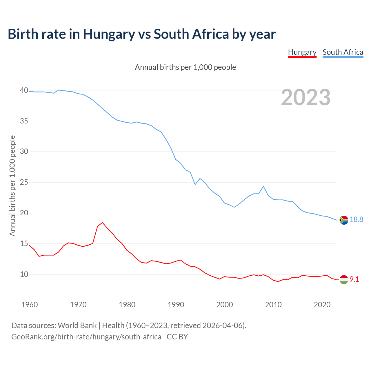 GeoRank.org/birth-rate/hungary/south-africa | CC BY