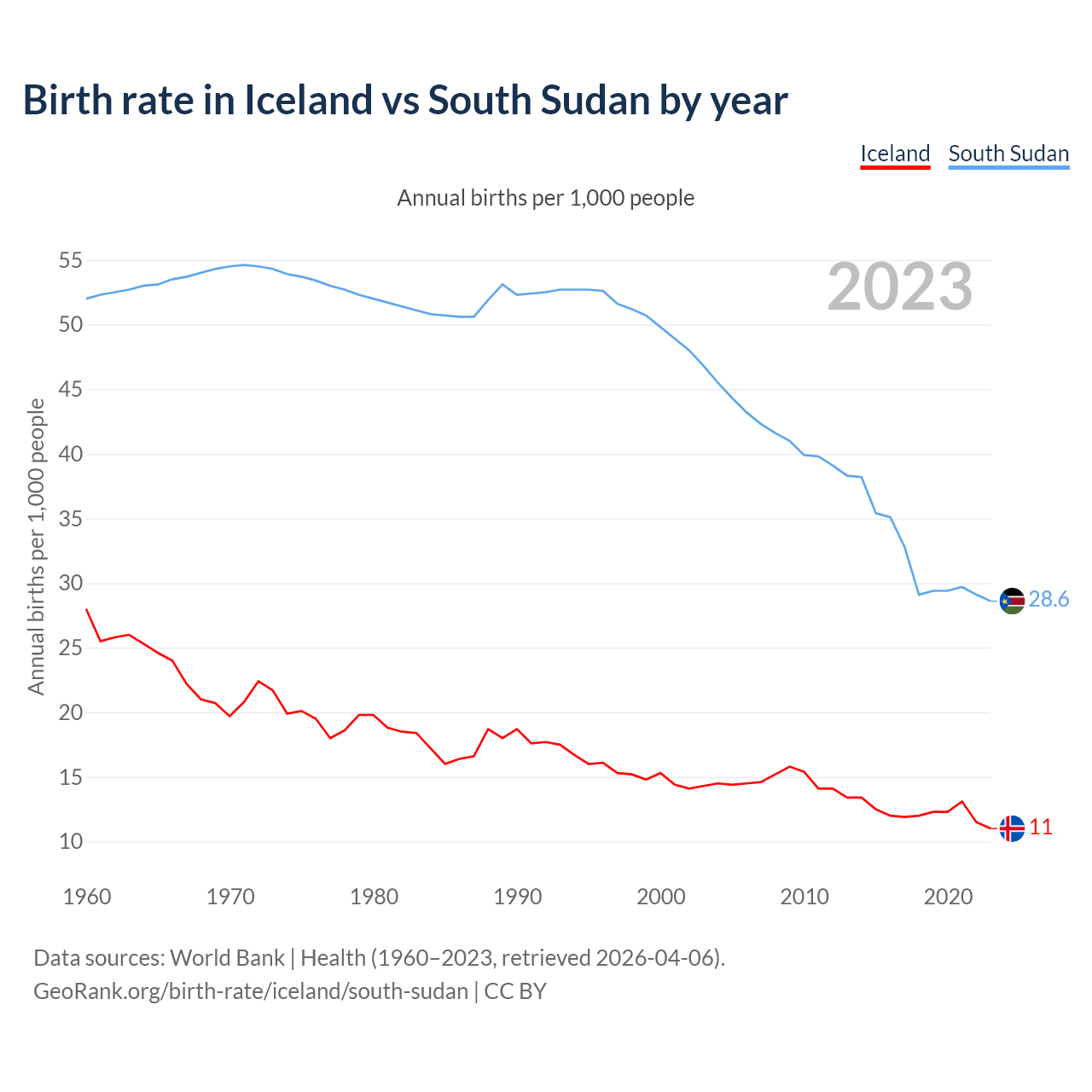 GeoRank.org/birth-rate/iceland/south-sudan | CC BY