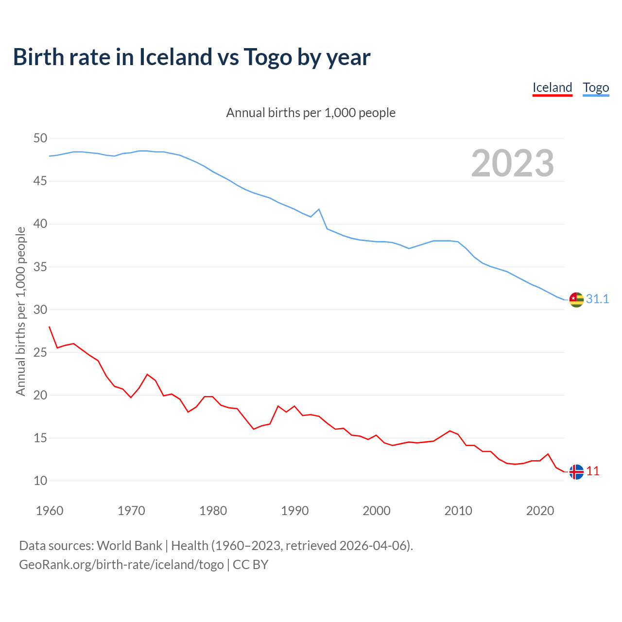 GeoRank.org/birth-rate/iceland/togo | CC BY