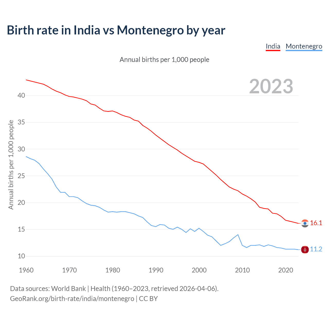 GeoRank.org/birth-rate/india/montenegro | CC BY