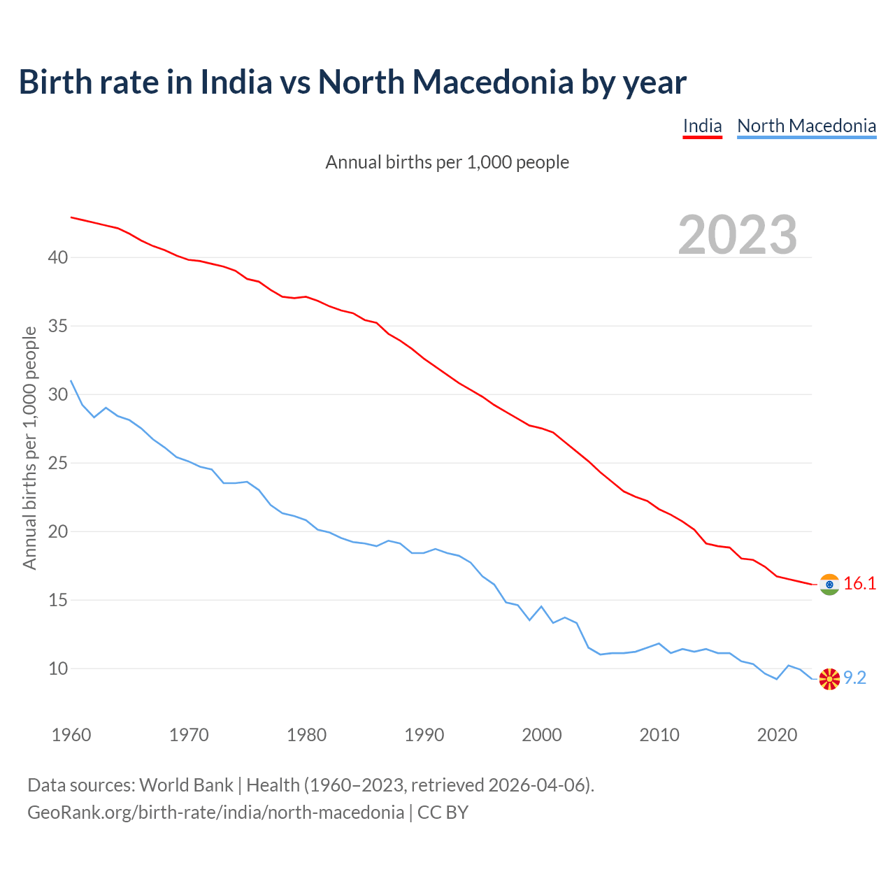 GeoRank.org/birth-rate/india/north-macedonia | CC BY