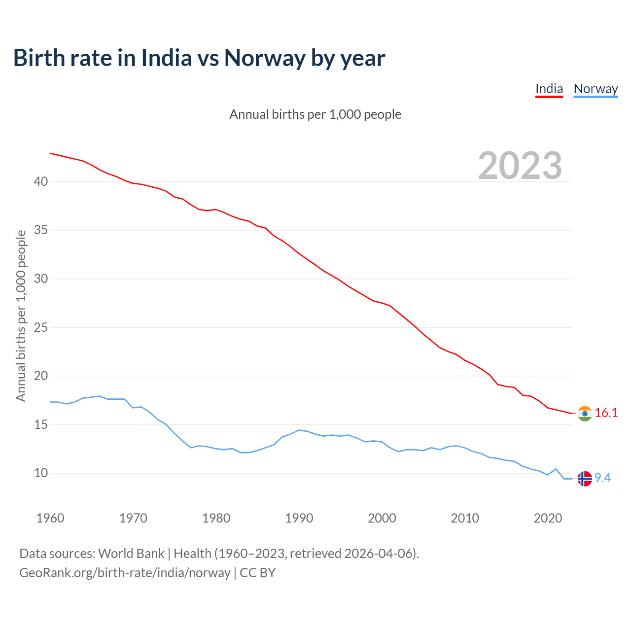 GeoRank.org/birth-rate/india/norway | CC BY