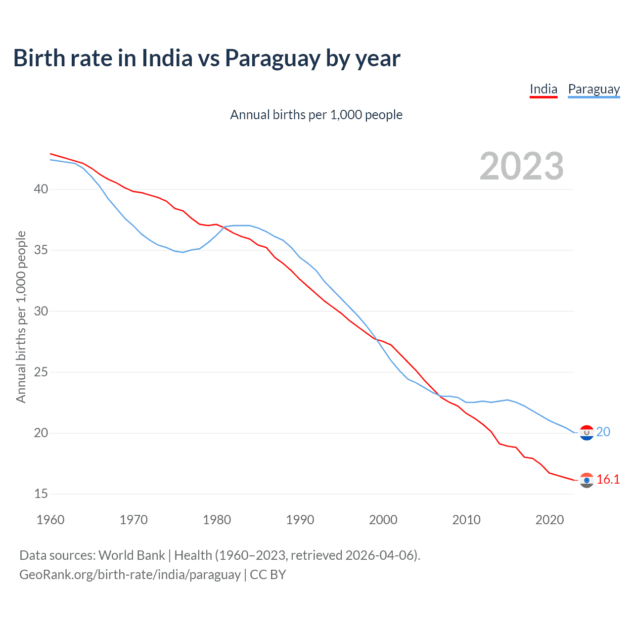 GeoRank.org/birth-rate/india/paraguay | CC BY