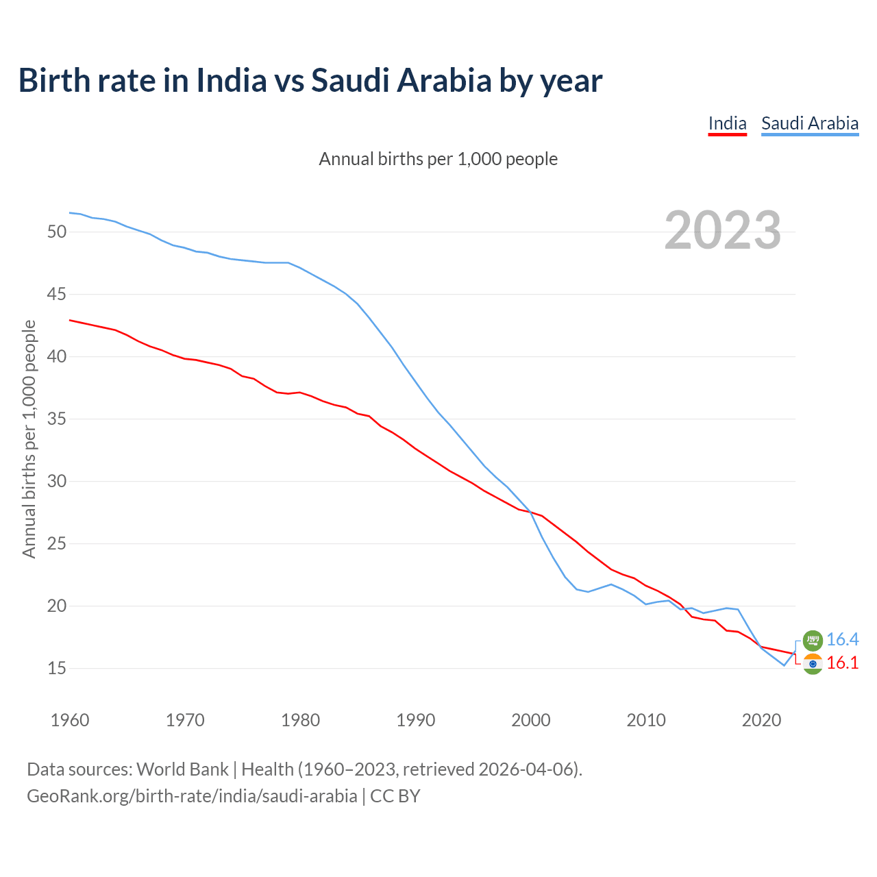 GeoRank.org/birth-rate/india/saudi-arabia | CC BY