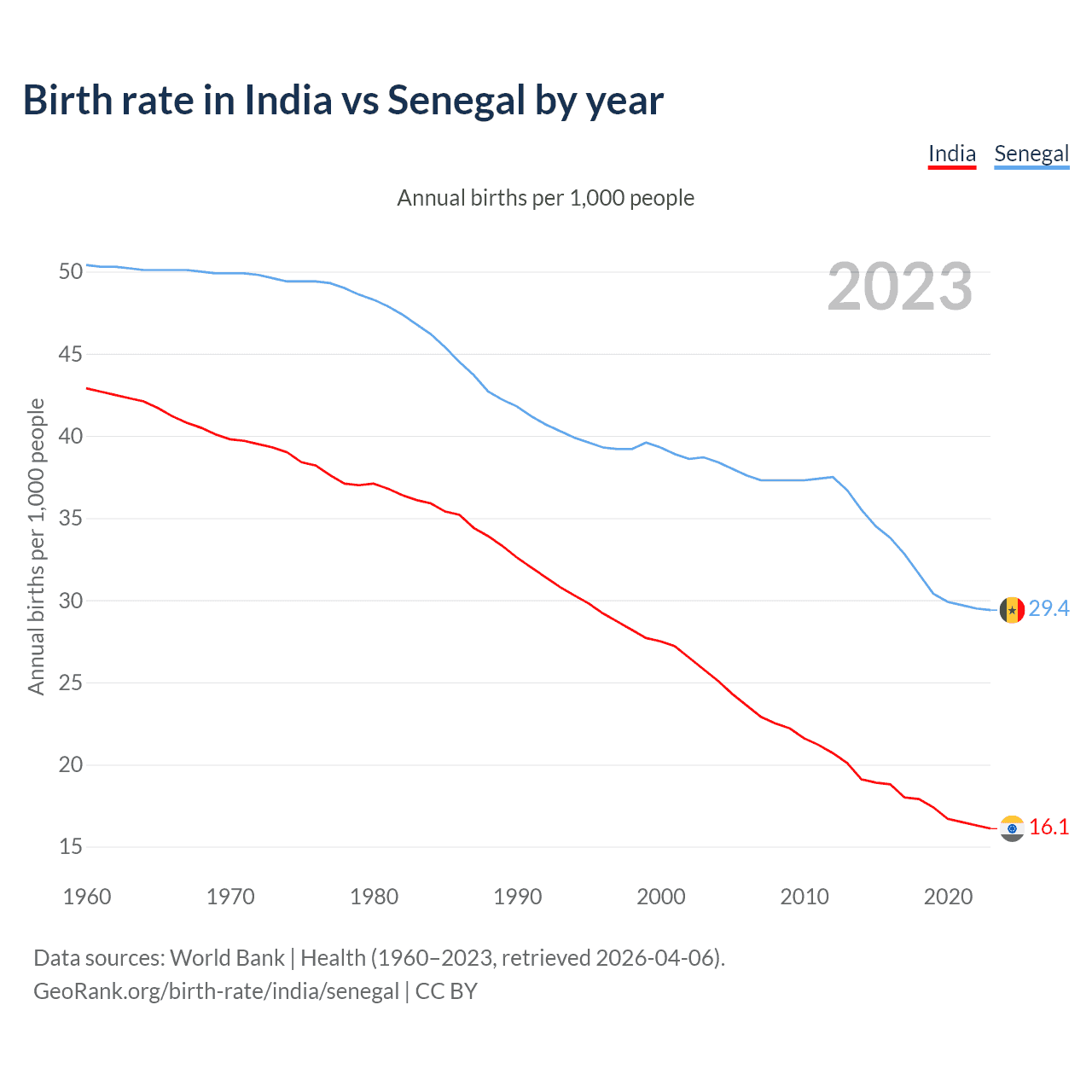 GeoRank.org/birth-rate/india/senegal | CC BY