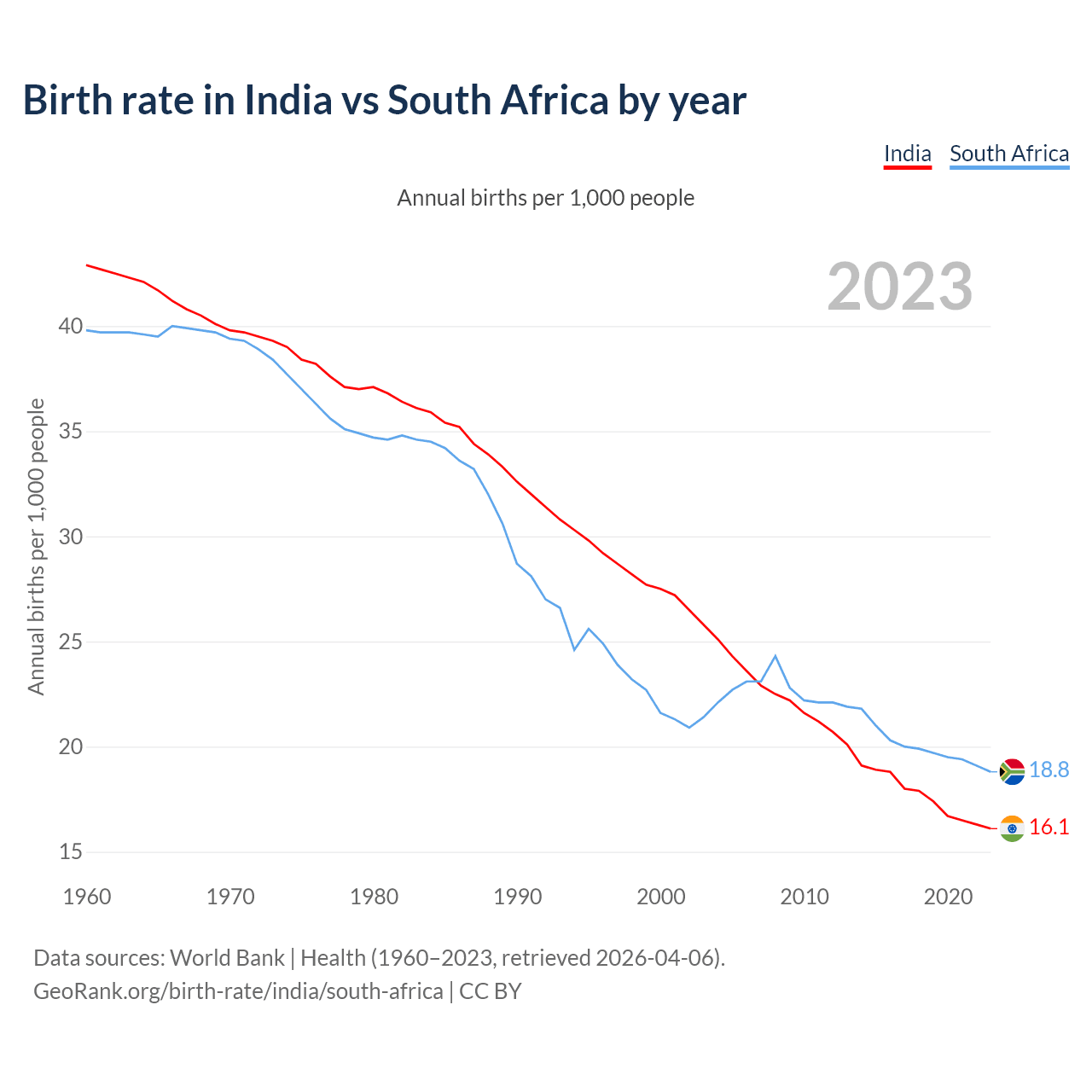 GeoRank.org/birth-rate/india/south-africa | CC BY