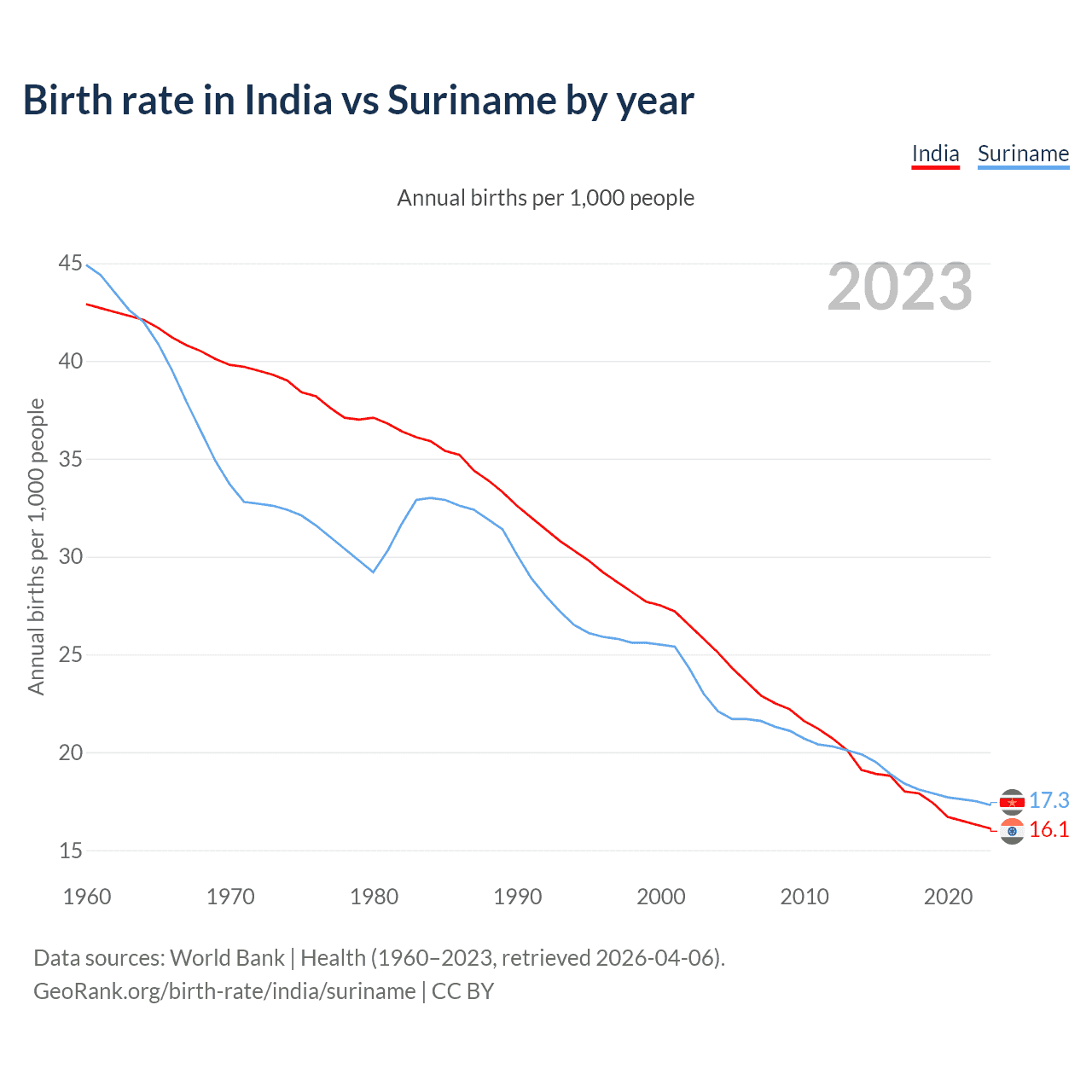 GeoRank.org/birth-rate/india/suriname | CC BY
