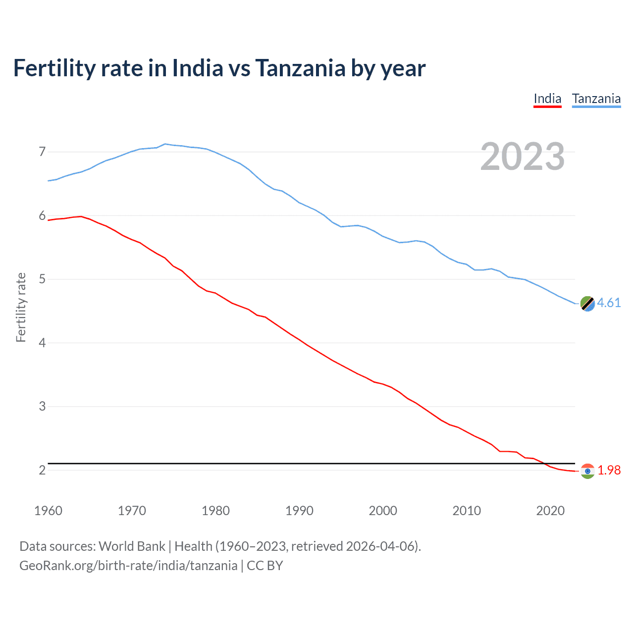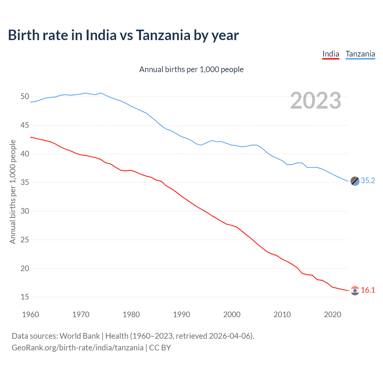 GeoRank.org/birth-rate/india/tanzania | CC BY