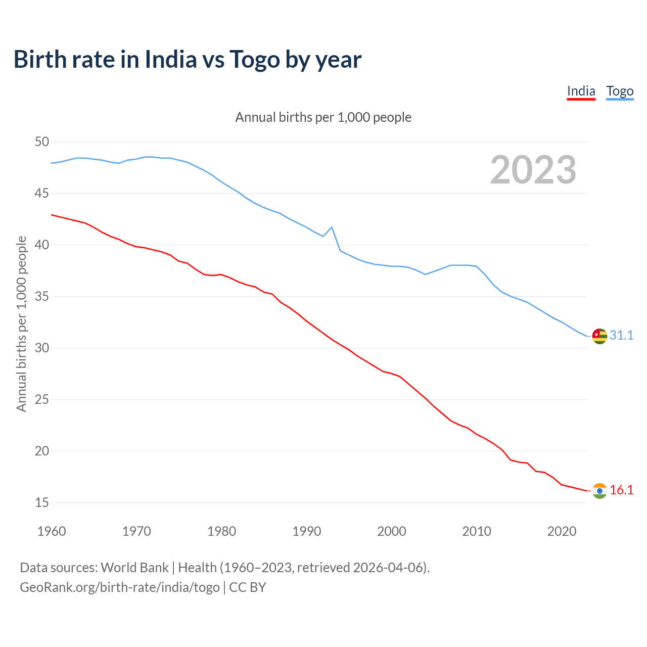GeoRank.org/birth-rate/india/togo | CC BY