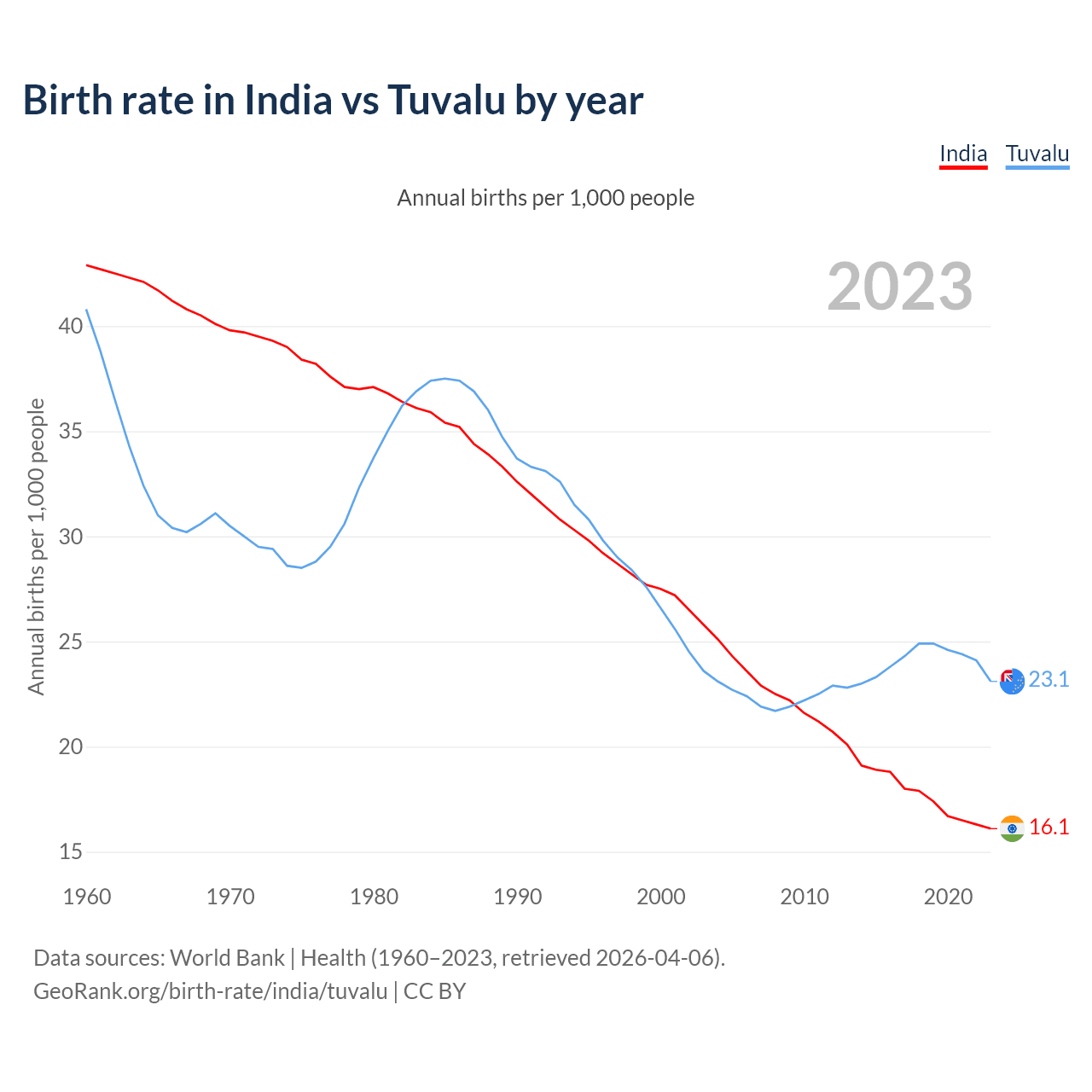 GeoRank.org/birth-rate/india/tuvalu | CC BY