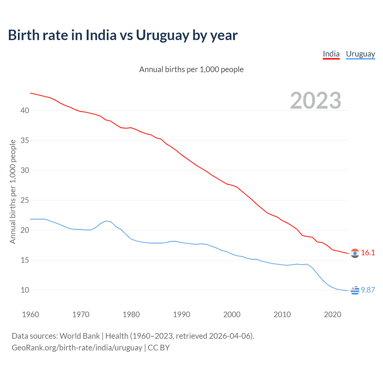 GeoRank.org/birth-rate/india/uruguay | CC BY