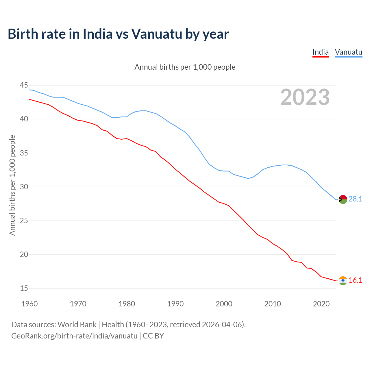 GeoRank.org/birth-rate/india/vanuatu | CC BY