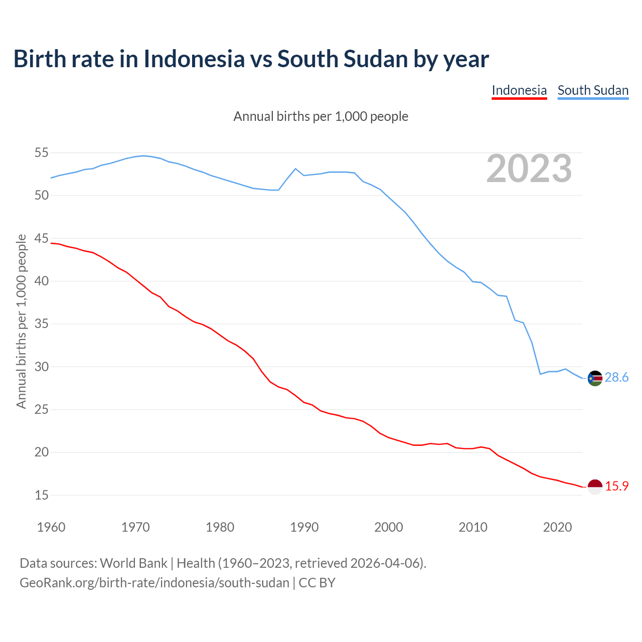 GeoRank.org/birth-rate/indonesia/south-sudan | CC BY