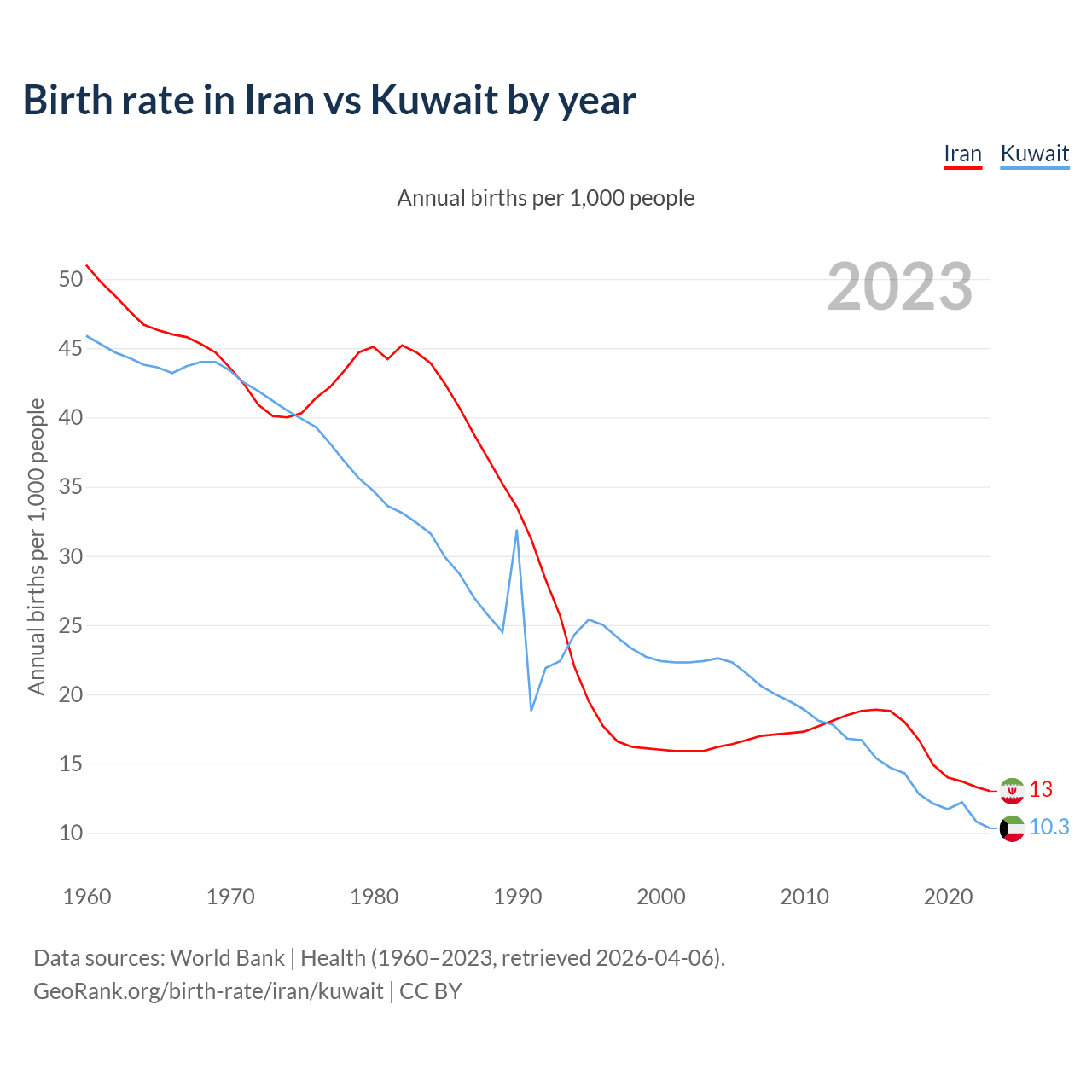 GeoRank.org/birth-rate/iran/kuwait | CC BY