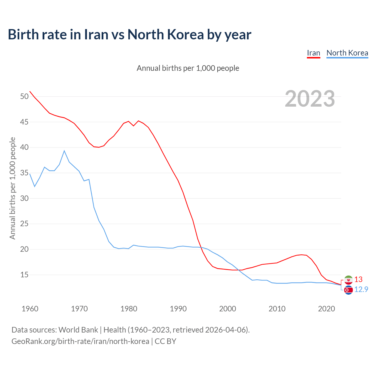 GeoRank.org/birth-rate/iran/north-korea | CC BY