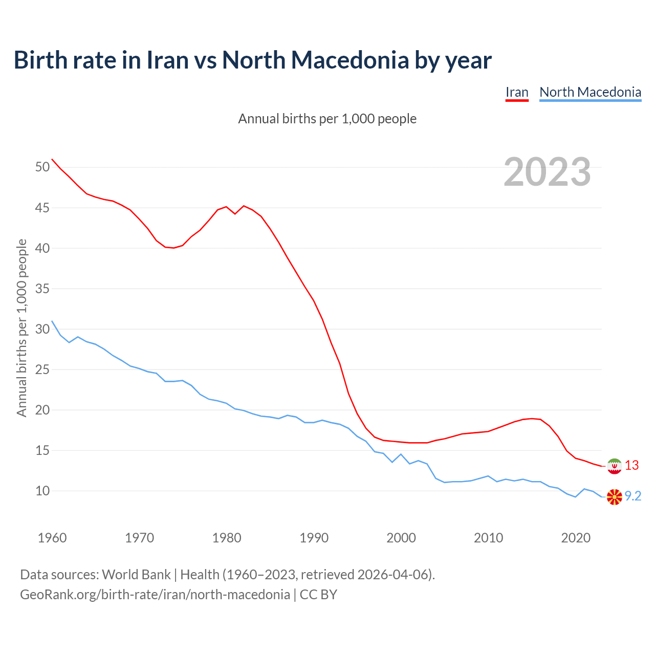 GeoRank.org/birth-rate/iran/north-macedonia | CC BY