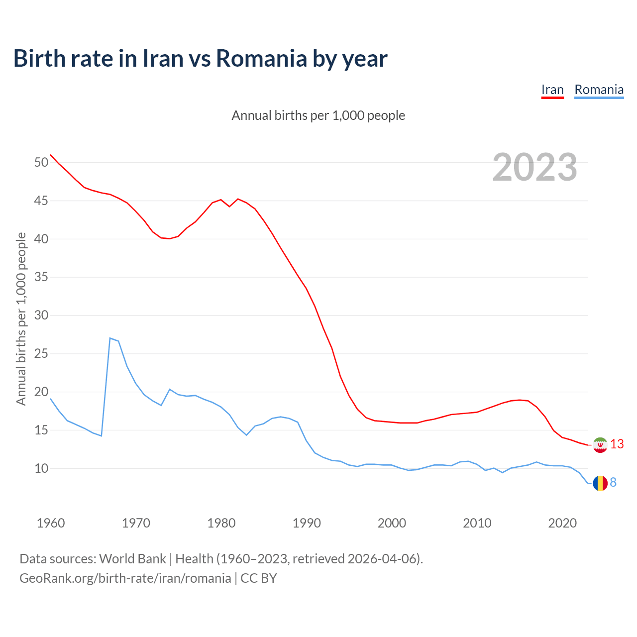 GeoRank.org/birth-rate/iran/romania | CC BY