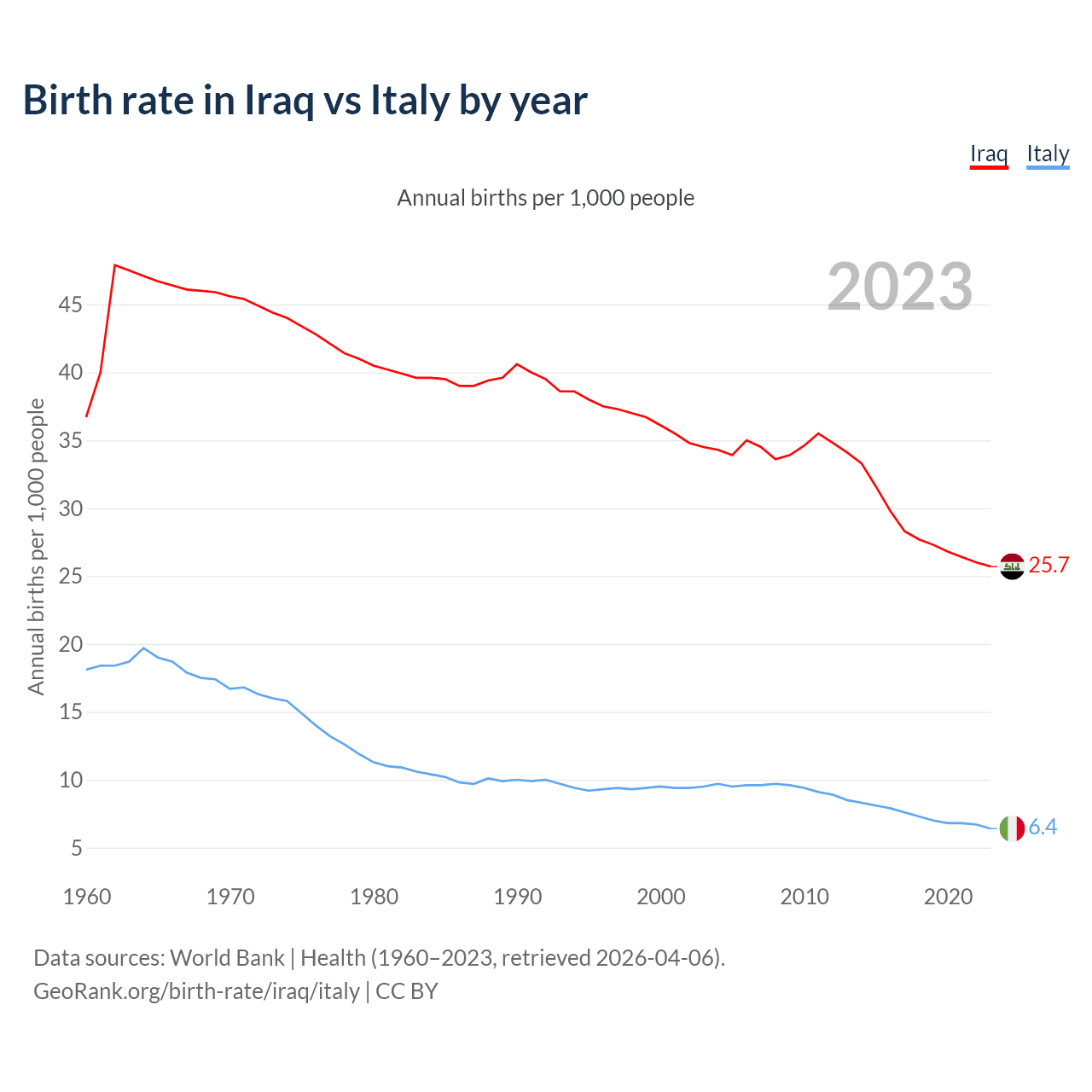 GeoRank.org/birth-rate/iraq/italy | CC BY