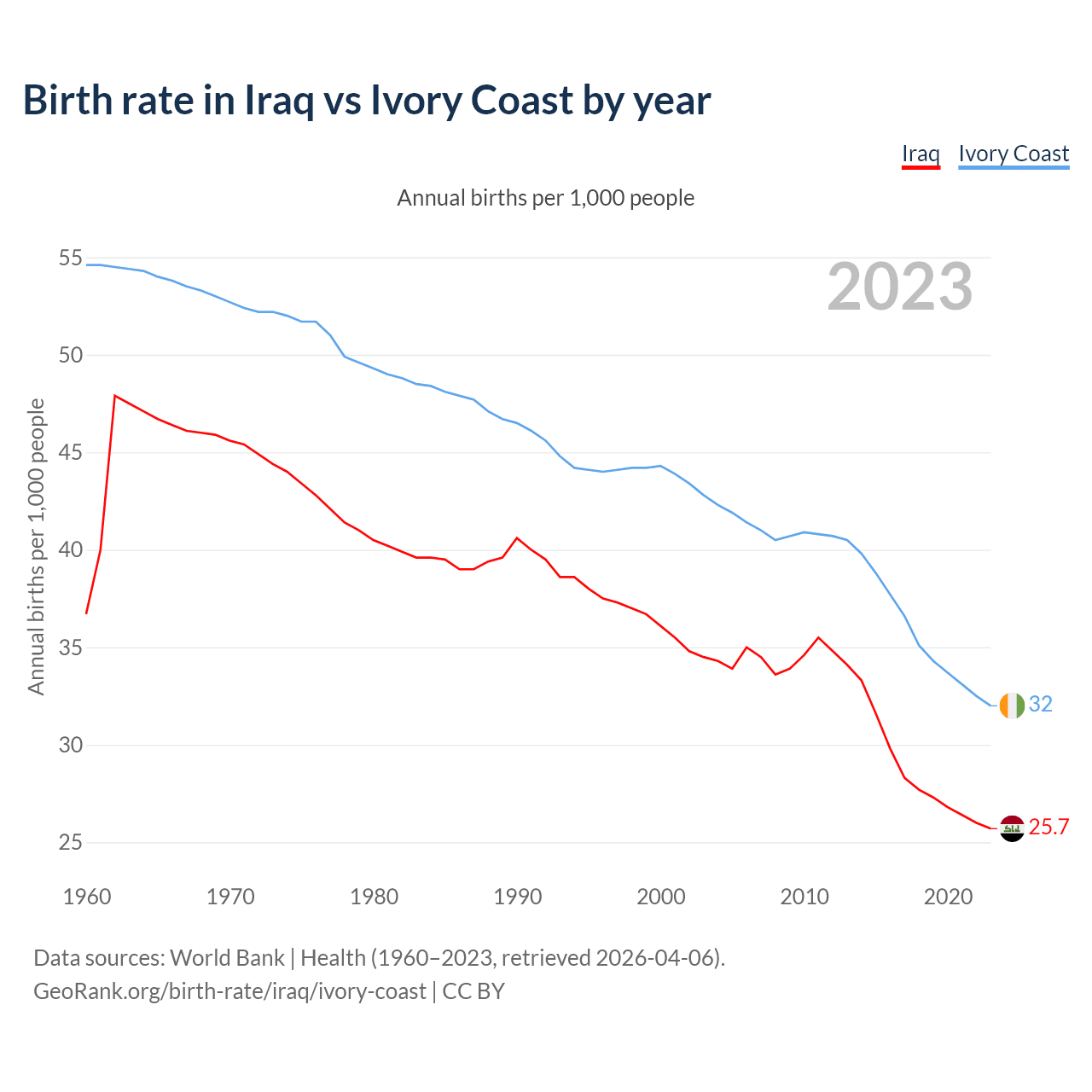 GeoRank.org/birth-rate/iraq/ivory-coast | CC BY
